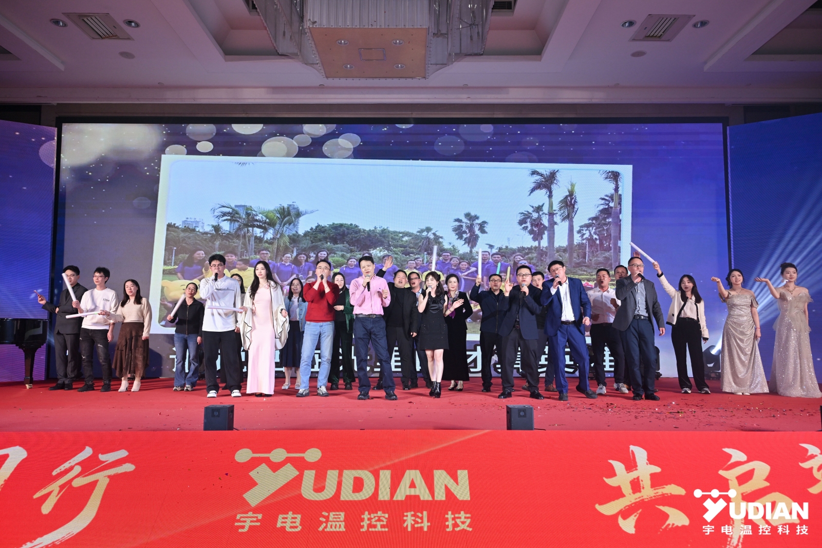 踏浪前行,聚勢(shì)而新。過(guò)去一年,宇電人以恒心鑄匠心,在精密溫控領(lǐng)域持續(xù)突破,步履堅(jiān)定。2026年1月1日,全體宇電人歡聚一堂,以一場(chǎng)融合溫馨、歡笑與溫暖的年度盛宴,共敘奮斗情誼,共繪未來(lái)藍(lán)圖,奏響2026年的奮進(jìn)序曲。向上而行,實(shí)干奮進(jìn)。宇電人以飽滿(mǎn)的精神與堅(jiān)定的信心,共同迎接嶄新征程。來(lái)自全國(guó)各地的宇電同仁與親友們齊聚一堂,走過(guò)紅毯,在簽名墻上留下珍貴印記,并于心愿墻前鄭重寫(xiě)下對(duì)2026年的美好期盼與祝福,現(xiàn)場(chǎng)洋溢著真摯的問(wèn)候與笑語(yǔ),溫暖而莊重,凝聚成屬于宇電人的共同記憶。隨著全場(chǎng)燈光漸暗,一束激光劃破,光點(diǎn)在屏幕中勾勒出宇電標(biāo)識(shí)的輪廓,線(xiàn)條流轉(zhuǎn)間,“不斷努力,追求完美”在光影交錯(cuò)中漸次顯現(xiàn)。隨后,光束靈動(dòng)變幻,繪出一匹駿馬,繞場(chǎng)奔騰一周,寓意宇電人如駿馬奮蹄,在2026年奔向新程、一往無(wú)前。當(dāng)最后一道光芒定格,四位主持人在光影余韻中登場(chǎng),正式宣布“宇你同行?共啟新程”2026年宇電迎新年