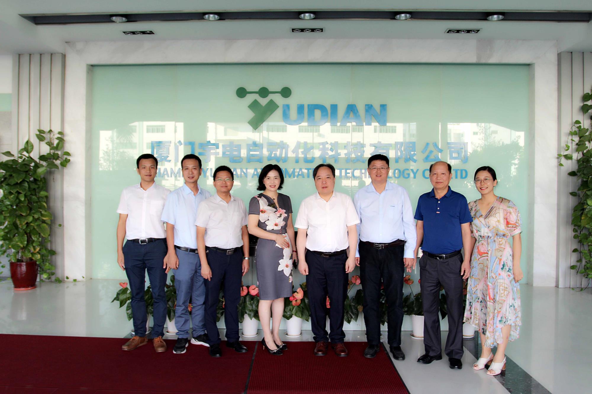 9月19日下午,中國計量科學(xué)研究院黨委書(shū)記兼副院長(cháng)段宇寧在廈門(mén)市市場(chǎng)監督管理局副局長(cháng)張金龍等陪同下到宇電總部參觀(guān)調研,公司總經(jīng)理蔣艷芳女士熱情接待并陪同參觀(guān)。來(lái)訪(fǎng)領(lǐng)導一行參觀(guān)了公司的研發(fā)、生產(chǎn)及日常辦公區域等場(chǎng)所,了解公司目前的發(fā)展現狀。期間,段宇寧書(shū)記就宇電產(chǎn)品技術(shù)等一系列問(wèn)題進(jìn)行了詳細詢(xún)問(wèn),總經(jīng)理蔣艷芳作了詳細匯報。調研過(guò)程中,段宇寧書(shū)記對宇電近30年專(zhuān)注做好熱工儀表的精神表示欽佩和贊賞,并勉勵公司充分發(fā)揮自主技術(shù)優(yōu)勢,不斷創(chuàng )新發(fā)展,繼續做大做強民族品牌??偨?jīng)理蔣艷芳代表公司感謝領(lǐng)導對宇電發(fā)展成績(jì)的肯定和鼓勵,并表示宇電將不斷努力,持續創(chuàng )新,開(kāi)拓進(jìn)取,繼續為自動(dòng)化儀器儀表行業(yè)做出更大貢獻。段書(shū)記一行來(lái)到了宇電五樓的運動(dòng)休閑區參觀(guān),他對宇電專(zhuān)門(mén)為員工精心打造的空中花園和羽毛球場(chǎng)、網(wǎng)球場(chǎng)等健身休閑場(chǎng)所贊不絕口,贊賞宇電是一家有溫度的企業(yè)。