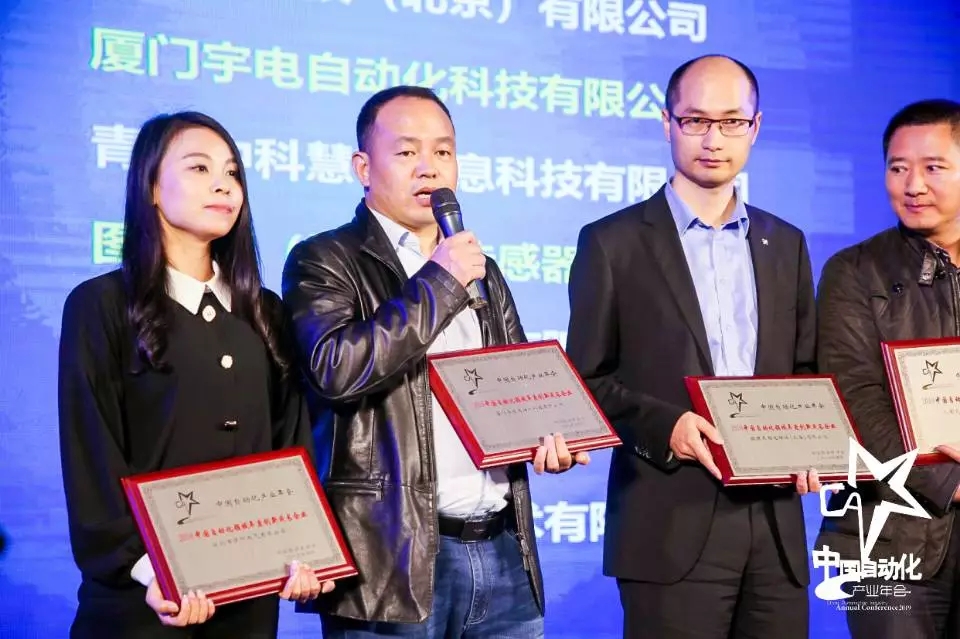由中國自動(dòng)化學(xué)會(huì )主辦的2019年中國自動(dòng)化產(chǎn)業(yè)年會(huì )暨第十四屆中國自動(dòng)化產(chǎn)業(yè)世紀行(CAIAC2019)頒獎盛典于4月18日在浙江紹興隆重舉行。宇電憑借深厚的積淀和強勁的創(chuàng )新能力以及可靠的測控產(chǎn)品及應用,再度斬獲“年度創(chuàng )新成長(cháng)企業(yè) ”大獎。據了解,自2006年至2019年,中國自動(dòng)化產(chǎn)業(yè)年會(huì )已歷經(jīng)十四年積淀、跨越,如今中國自動(dòng)化產(chǎn)業(yè)年會(huì )已發(fā)展成為業(yè)內專(zhuān)業(yè)的行業(yè)盛會(huì )。本次評選活動(dòng)歷時(shí)4個(gè)月,經(jīng)過(guò)入圍推薦、專(zhuān)家評審、網(wǎng)上投票等方式評選。公司銷(xiāo)售總監麻志純 上臺領(lǐng)獎(左二)活動(dòng)當晚,有200余位業(yè)界專(zhuān)家、企業(yè)高層及各行業(yè)的用戶(hù)代表齊聚一堂,共同見(jiàn)證和表彰了為自動(dòng)化行業(yè)發(fā)展做出重要貢獻的團隊與企業(yè)。宇電憑借28年在高端智能測控儀表領(lǐng)域的持續創(chuàng )新和優(yōu)秀的產(chǎn)品應用,得到行業(yè)專(zhuān)家和用戶(hù)的高度認可和青睞。宇電新一代AI-D7/E7系列導軌安裝型儀表作為高端智能測控儀表的專(zhuān)業(yè)供應商,宇電的測控產(chǎn)品方案已廣泛應