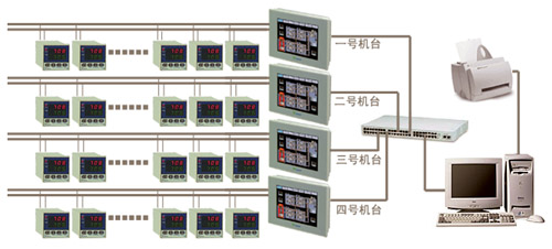 翔鷺滌綸紡纖HDT-3T機臺現場(chǎng)總線(xiàn)型溫控系統采用AIBUS現場(chǎng)總線(xiàn)型總體設計,以AI-2000工業(yè)級觸摸屏電腦作為上位機,多臺AI調節器通過(guò)AIBUS通訊協(xié)議現場(chǎng)聯(lián)接,觸摸屏電腦直接與AI調節器通過(guò)RS-485串行通訊實(shí)現90個(gè)通道溫度集中監控。AI調節器上的所有參數可以在觸摸屏中顯示,也可用觸摸屏電腦設定下載,數據顯示刷新率高,便于實(shí)時(shí)監控,溫度控制在±0.1℃。本系統同時(shí)監控四條拉絲生產(chǎn)線(xiàn)。