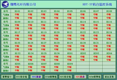 在滌綸紡纖后道生產(chǎn)工序中,每個(gè)滌綸拉絲HDT-3T假捻機臺有45個(gè)加熱缸存放聯(lián)苯熱媒分液相與氣相,所需控制的溫控加熱區共有45個(gè)液相,45個(gè)氣相檢測點(diǎn),為了對滌綸長(cháng)絲改變其物理特性,需要軟化過(guò)程,在滌綸拉絲HDT-3T假捻機臺加熱缸中的聯(lián)苯熱媒加熱控制來(lái)軟化長(cháng)絲創(chuàng )造拉升條件,不同的長(cháng)絲拉升軟化溫度不同。由于原機臺溫控系統老舊,控制品質(zhì)不高,不適應制程要求,擬對現有T機臺的溫控系統進(jìn)行改造,每個(gè)T臺假捻機有45個(gè)加熱缸,分兩層:下層聯(lián)苯熱媒液相加熱控制輸出驅動(dòng)SSR至加熱管,上層汽相45個(gè)監測,每T臺控制系統有90個(gè)通道。經(jīng)系統改造采用AI調節器、AI巡檢儀通訊表與AI-2000液晶觸摸式工業(yè)平板電腦之間通訊,完全實(shí)現集中控制。一臺觸摸屏電腦可以同時(shí)與90個(gè)測控點(diǎn)通訊,通訊方式為RS-485串行通訊,這樣所有溫控表中的控制信息與數據信息都在觸摸屏電腦上統一管理、分配。