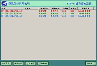 系統按照客戶(hù)的要求設置好報警產(chǎn)生時(shí)間、形式、長(cháng)短和解除方式,實(shí)時(shí)快速準確的進(jìn)行報警。并保存每一次報警的報警類(lèi)型、報警時(shí)間、應答時(shí)間、結束時(shí)間、報警時(shí)報警后的實(shí)時(shí)數據、操作人員等,客戶(hù)需要的信息,對報警數據的查詢(xún)更可方便客戶(hù)進(jìn)行事故分析。