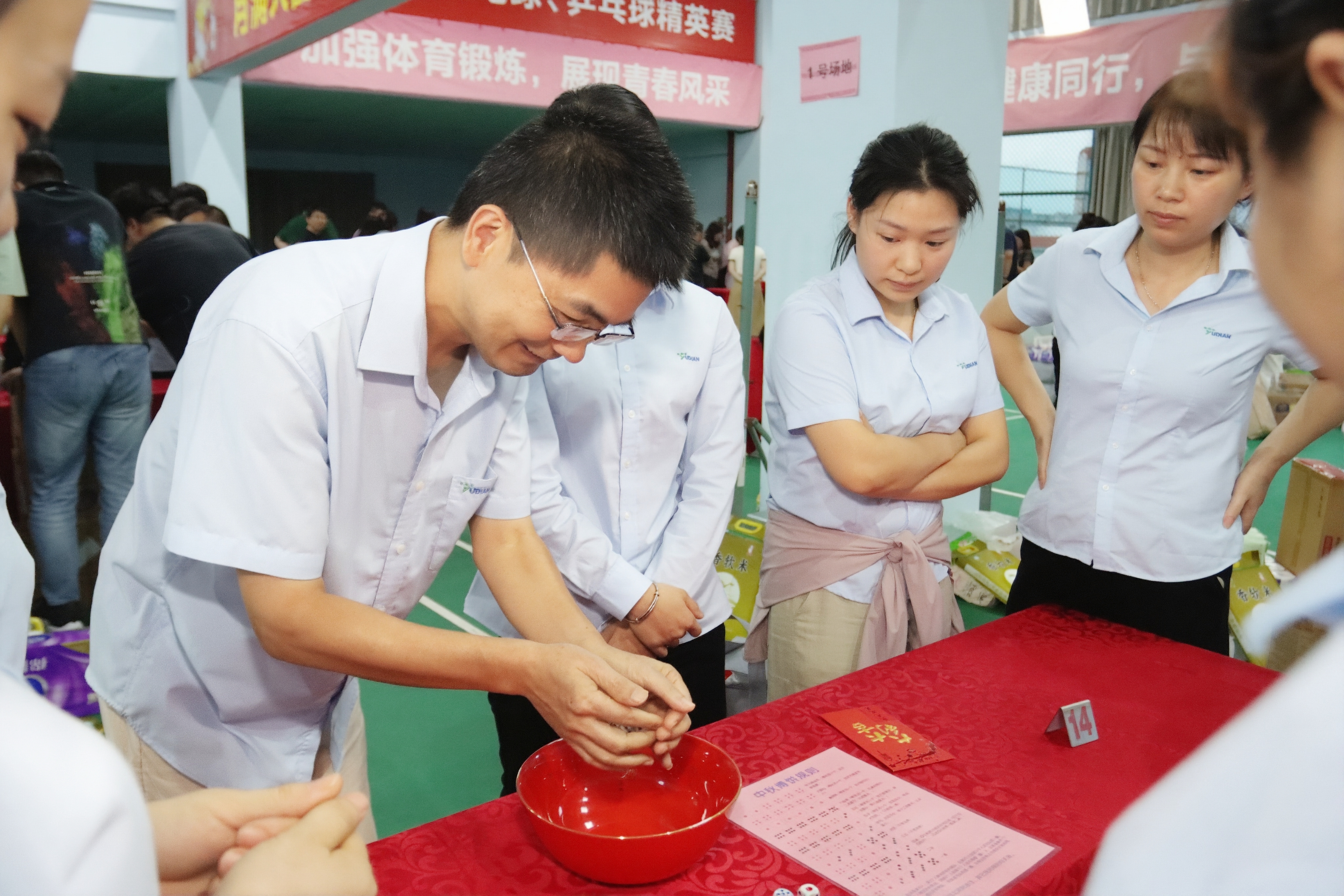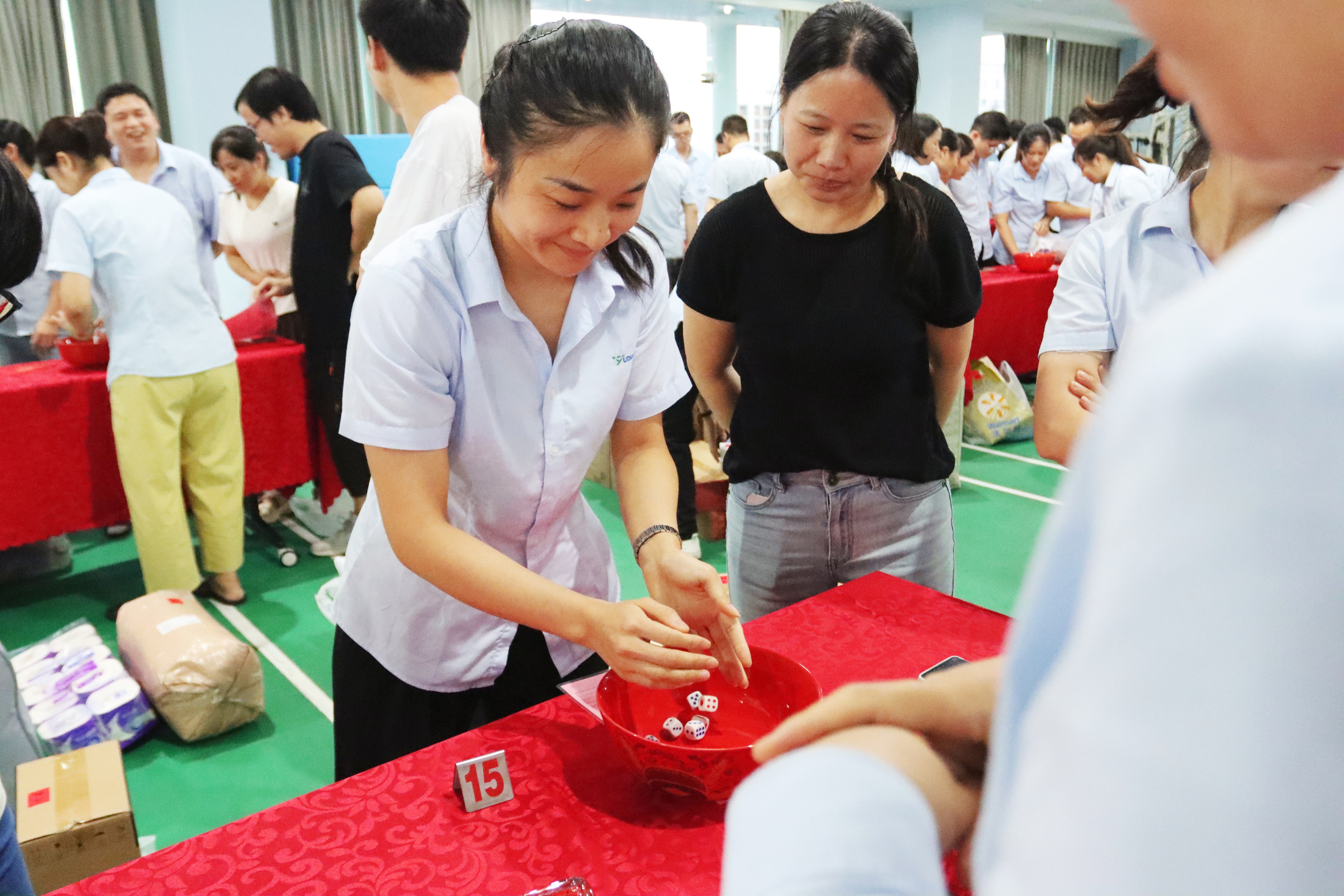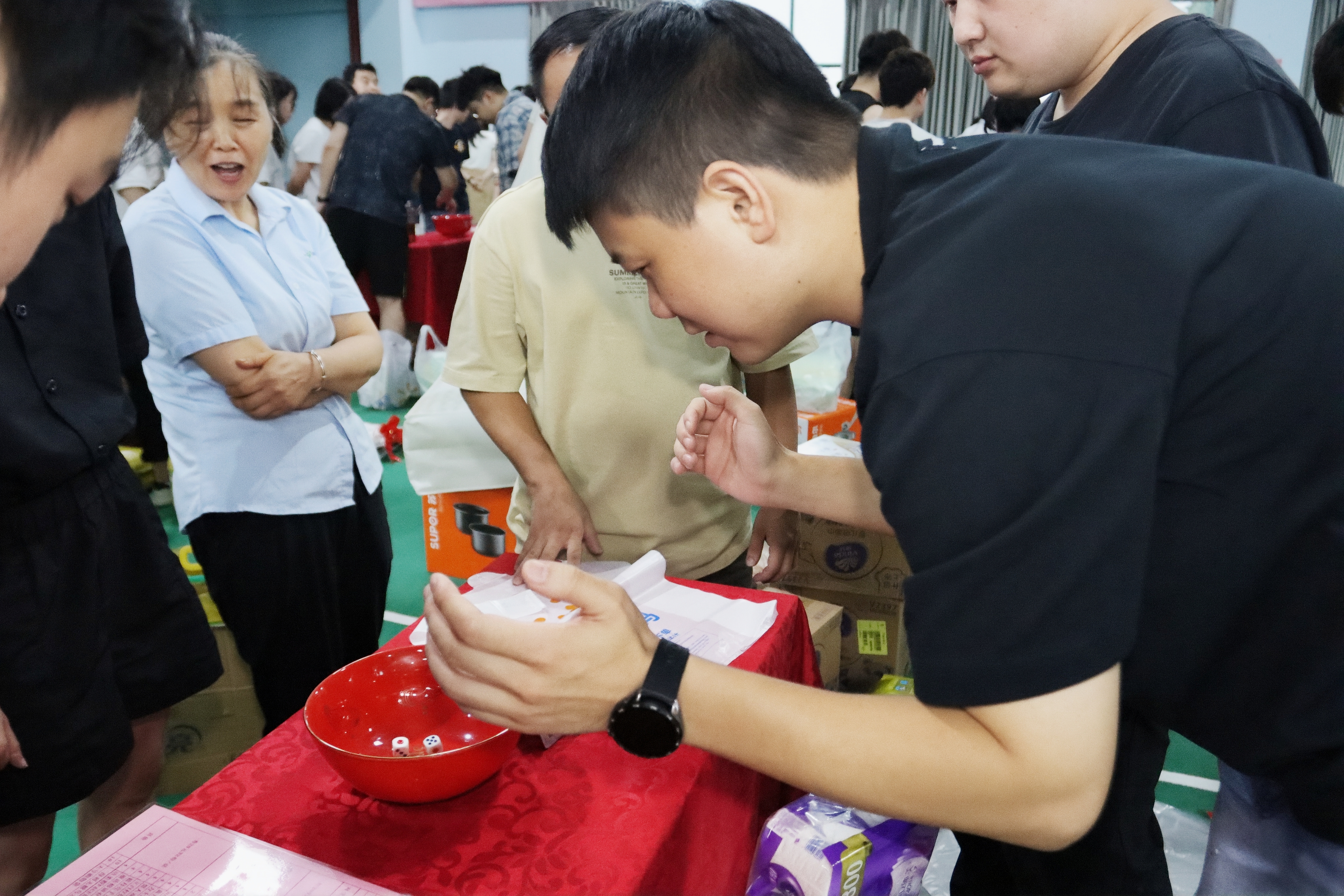 活動(dòng)現(xiàn)場(chǎng),骰子在紅碗中清脆滾動(dòng),喝彩聲與歡笑聲交織成最動(dòng)人的樂章。宇電人暫別工作的專注,全身心投入這場(chǎng)歡樂盛宴:有人為一擲中的而驚喜雀躍,有人因團(tuán)隊(duì)互動(dòng)而暖意融融。在博餅的一收一放間,不僅是獎(jiǎng)品的傳遞,更是宇電人彼此聯(lián)結(jié)的紐帶在悄然加固,團(tuán)隊(duì)的凝聚力與歸屬感,在這濃濃的節(jié)日氛圍里悄然升華。